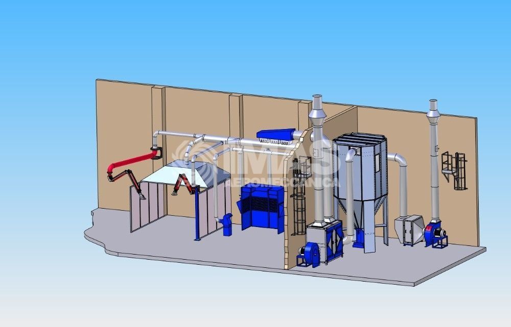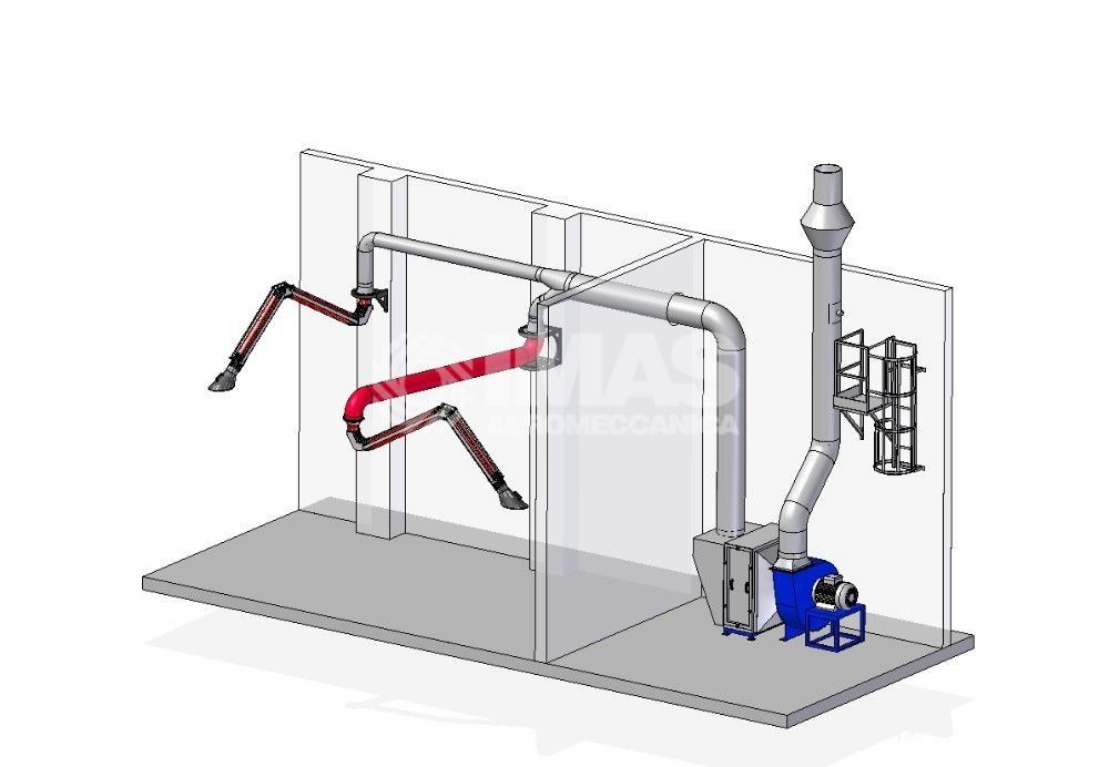 - Dans le cas de soudage continue, IMAS étude et développe des installations centralisées avec des systèmes de filtration à cellules métalliques série FWS ou à poches en fibre de verre série FTS