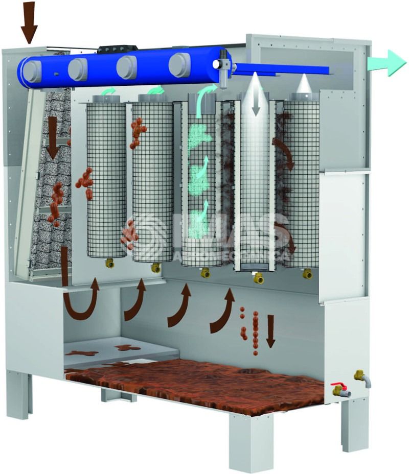 - Dépoussiéreurs et dépurateurs avec système de filtration par manches, par cartouches, par bougies ;